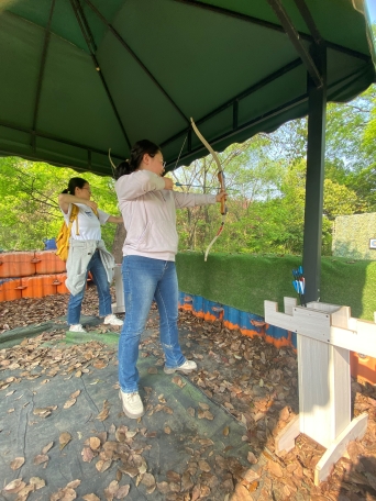射箭,作為古老而又充滿魅力的運動,激勵著隊員躍躍欲試,都想體驗一把拉弓的感覺,只見隊員們挺立拉弓、瞄準(zhǔn)、放箭,行云流水的一系列動作,充滿著力量與美感。當(dāng)箭矢劃破長空,飛向靶心,仿佛看到了自己內(nèi)心的成就和滋美,在原始生態(tài)中蘊含出力量的綻放。